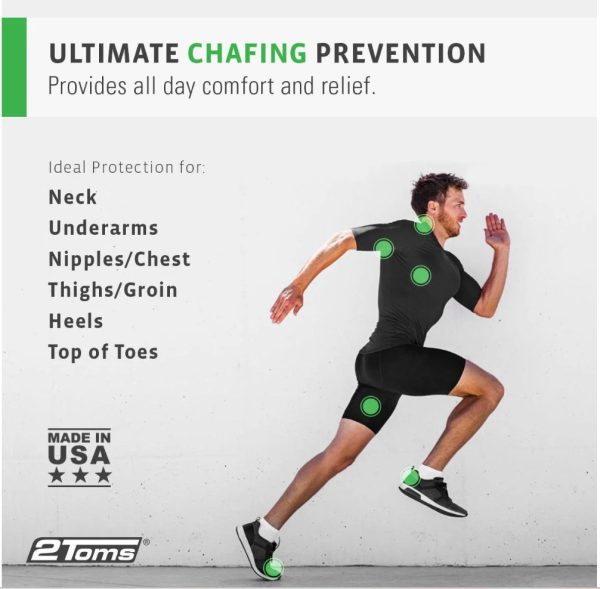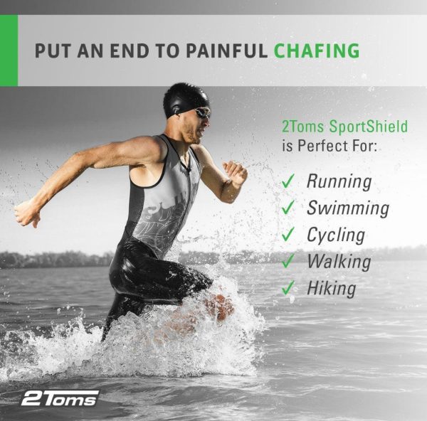 2Toms SportShield Anti Chafing Roll-On revolutionary waterproof formula prevents the friction that causes chafing and blisters while performing with you under the most grueling conditions, even while swimming.