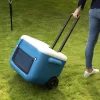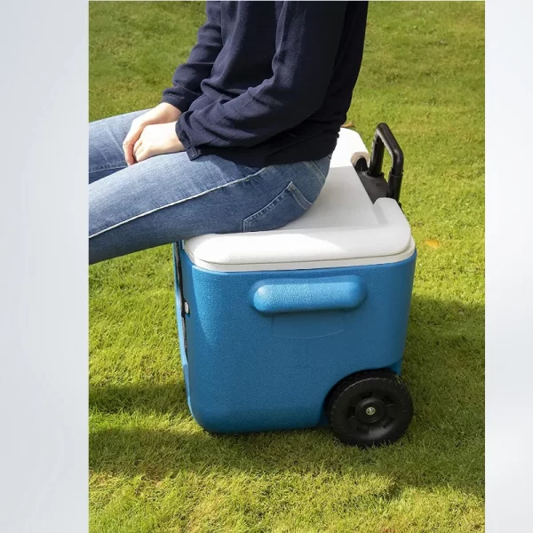 This 47 litre capacity cooler is large enough to carry standing 1.5L bottles and has enough room for refreshments for a large group. Whether you’re going camping, throwing a party, or a sporting event is your destination, you’ll easily tackle any terrain with the sturdy wheels and long extendable steel handle. With the help of the additional recessed handles, you can easily lift the cooler in and out of the car or onto a park bench. The interior of the box is BPA-free and is therefore suitable for transporting food, drinks and fruit.