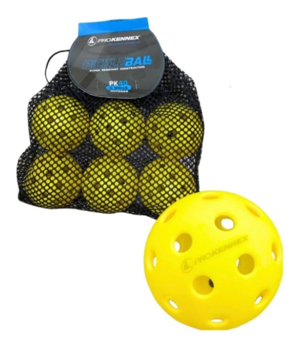 PROKENNEX outdoor pickleball PK40 is made of Polypropylene with diameter of 74mm and weight 25.5g.
