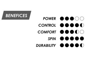 The 4S string is the one that will generate the most spin in this range with a square construction that allows even more spin.