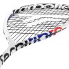 The racket shape was redesigned by the Airshaft section for better aerodynamics and head acceleration. The single shaft is reinforced on the two sides with X-Arms tendons to limit racket flexibility and provide stability and precision on impact. To increase grip effect and tolerance against off-centre shots, the Carboflex 130 X-TOP features “Extended String hole” technology: 12 eyelets at specific spots on the frame (at 3, 9 and 12 o’clock) have been enlarged to let the strings breathe and enhance their elasticity.