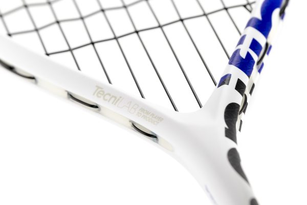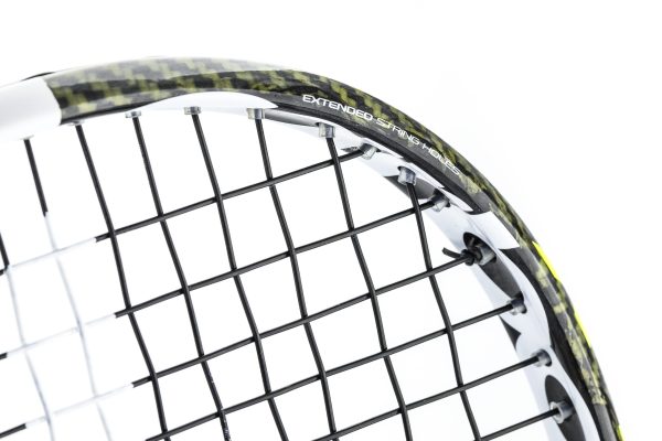 The monoshaft construction is reinforced on both sides by the “X-Arms” tendons in order to limit the flexibility of the racket and provide stability and precision at impact. To increase spin and tolerance on off-center hits, the Carboflex 125 X-TOP incorporates “Extended String holes” technology: 12 eyelets at specific locations on the frame (3 o’clock, 9 o’clock and 12 o’clock) have been widened to let the ropes breathe and encourage their elasticity.