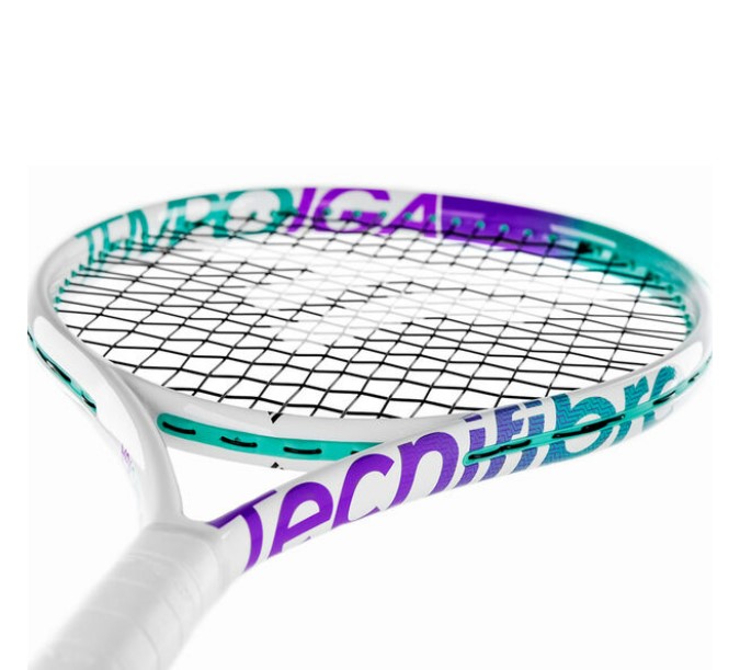 Co-designed with Iga Swiatek, the racket features her two favorite colors, blue and purple, along with a glossy finish that adds a touch of sparkle. The design balances a “girly” aesthetic with a strong performance focus.