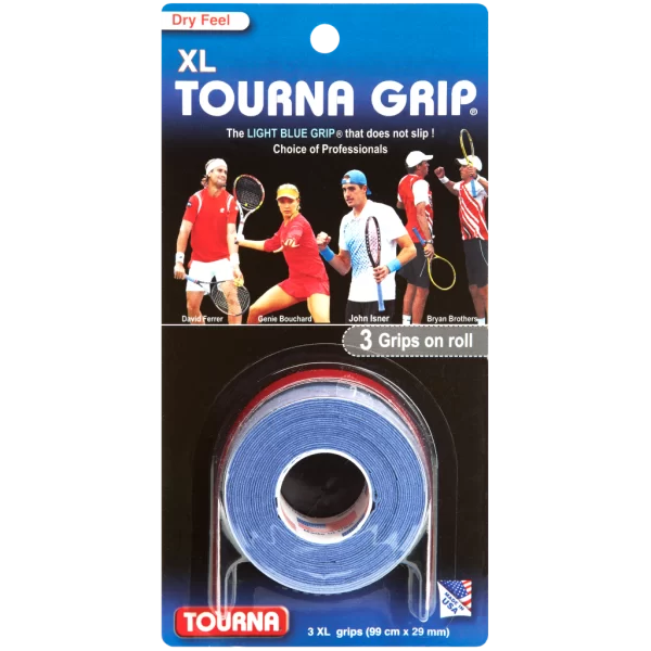 Includes Finishing Tape. The Tourna-Grip Light Blue Color is a Federally Registered Trademark. You can identify Tourna Grip by its famous blue color on TV, magazines, or on the court next to you! Tourna Grip is also the only tennis overgrip MADE IN THE USA!!!