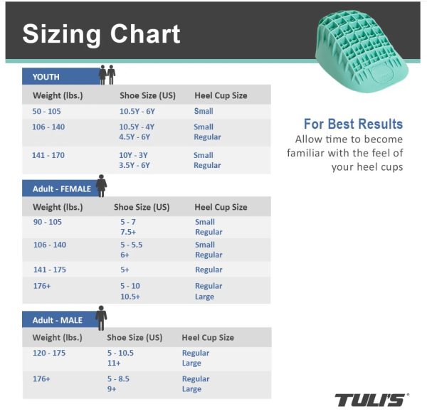 Tuli’s Heavy Duty® Heel Cups are twice as thick as Tuli’s® Classic® Heel Cups and offer maximum performance and protection when you need it the most. They work best in: athletic shoes, cleats, work boots and more spacious lace up shoes.